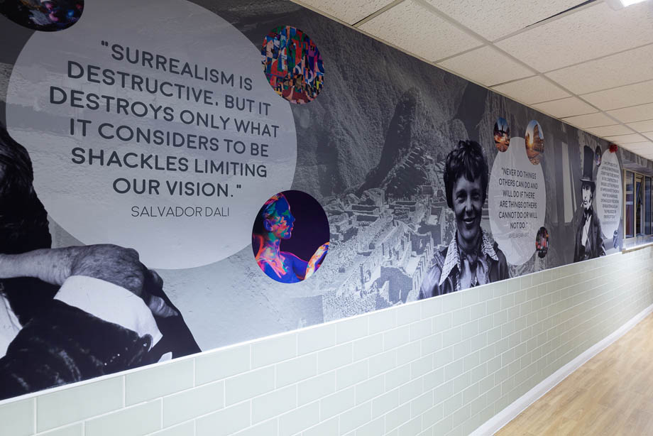 Let’s talk about why Wall Art works well for Sixth Form Corridors. For a start, it’s really important to provide a positive learning environment to engage young minds.