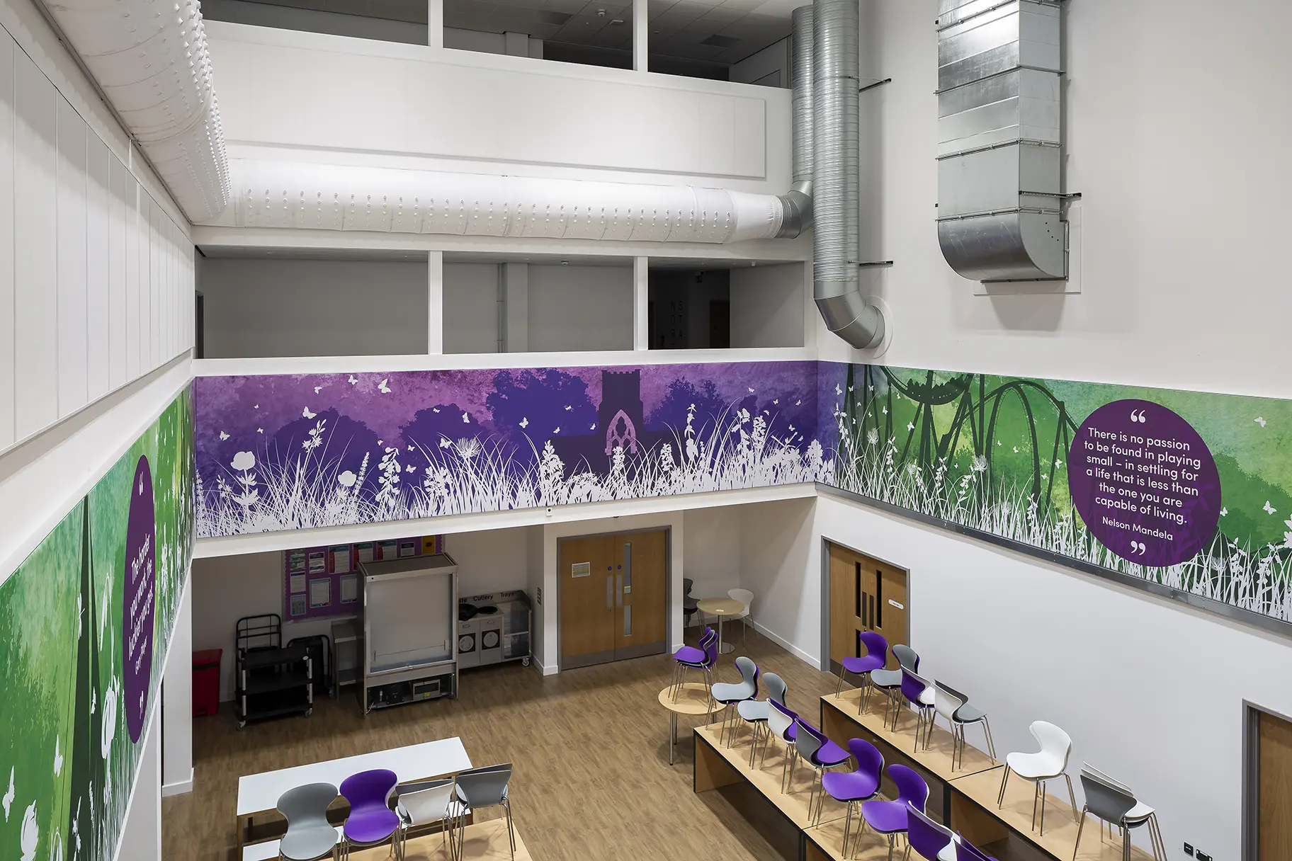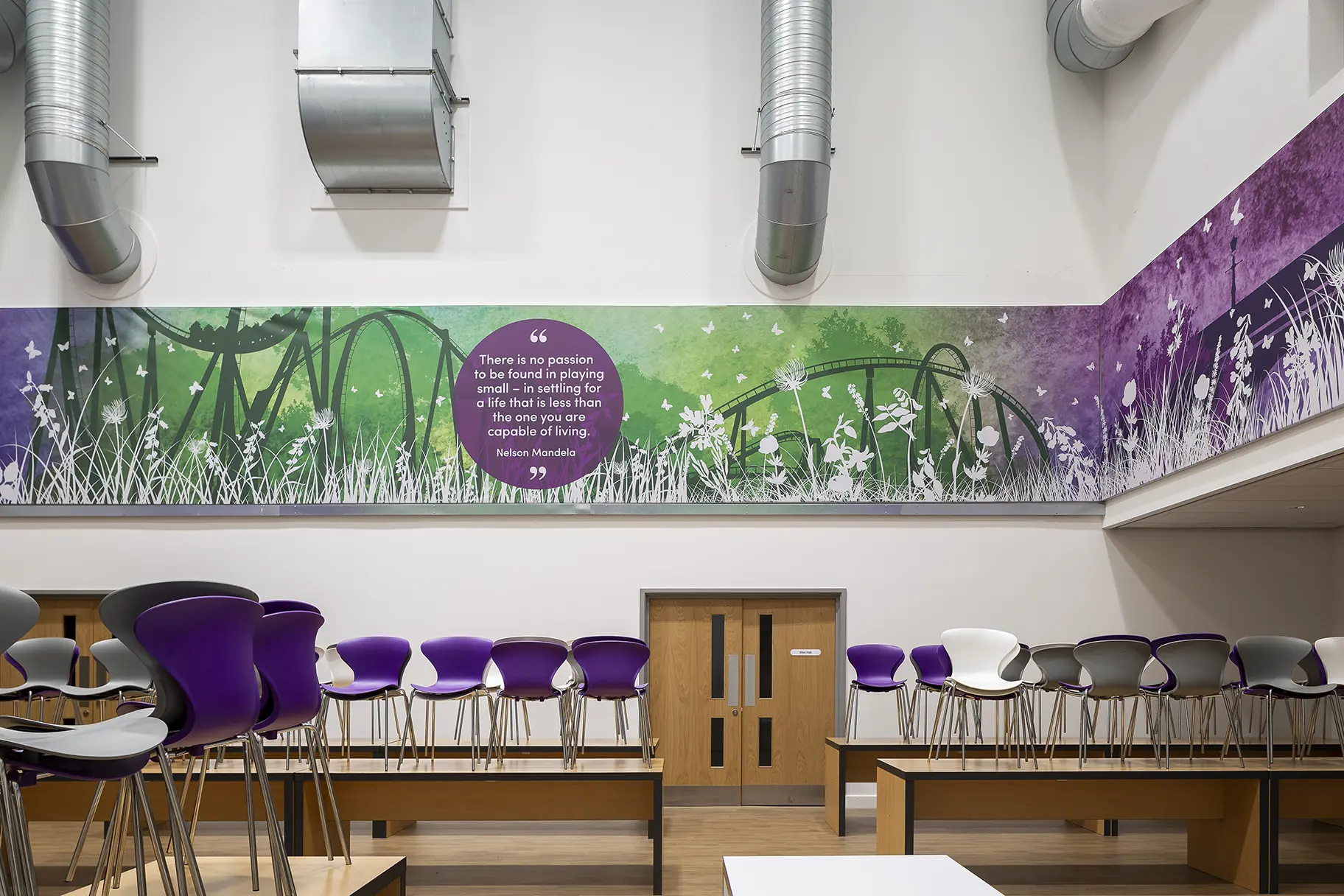 Motivational quotes are a very popular Wall Art theme. They’re proven to uplift spirits and create a positive atmosphere for students and staff to enjoy. Now, pupils can read inspiring phrases as they eat their lunch and return to the classroom feeling positive and motivated.