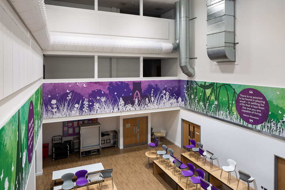 What we love most about creating bespoke Wall Art for schools is that we can tailor our designs to each school. For example, we used Chertsey High’s school colours of purple and green to align their Wall Art to their unique branding and image.