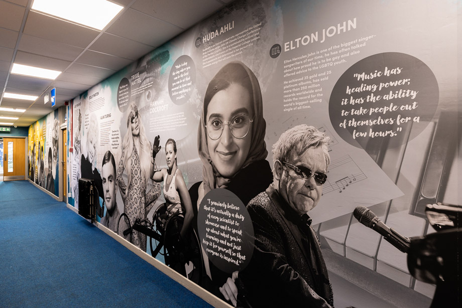 The design draws inspiration from the school’s broad curriculum. So when pupils learn about advances in the fields of STEM, Sport, Literature and Media, Philanthroy and the Arts, they’ll remember the faces from their corridor walls.