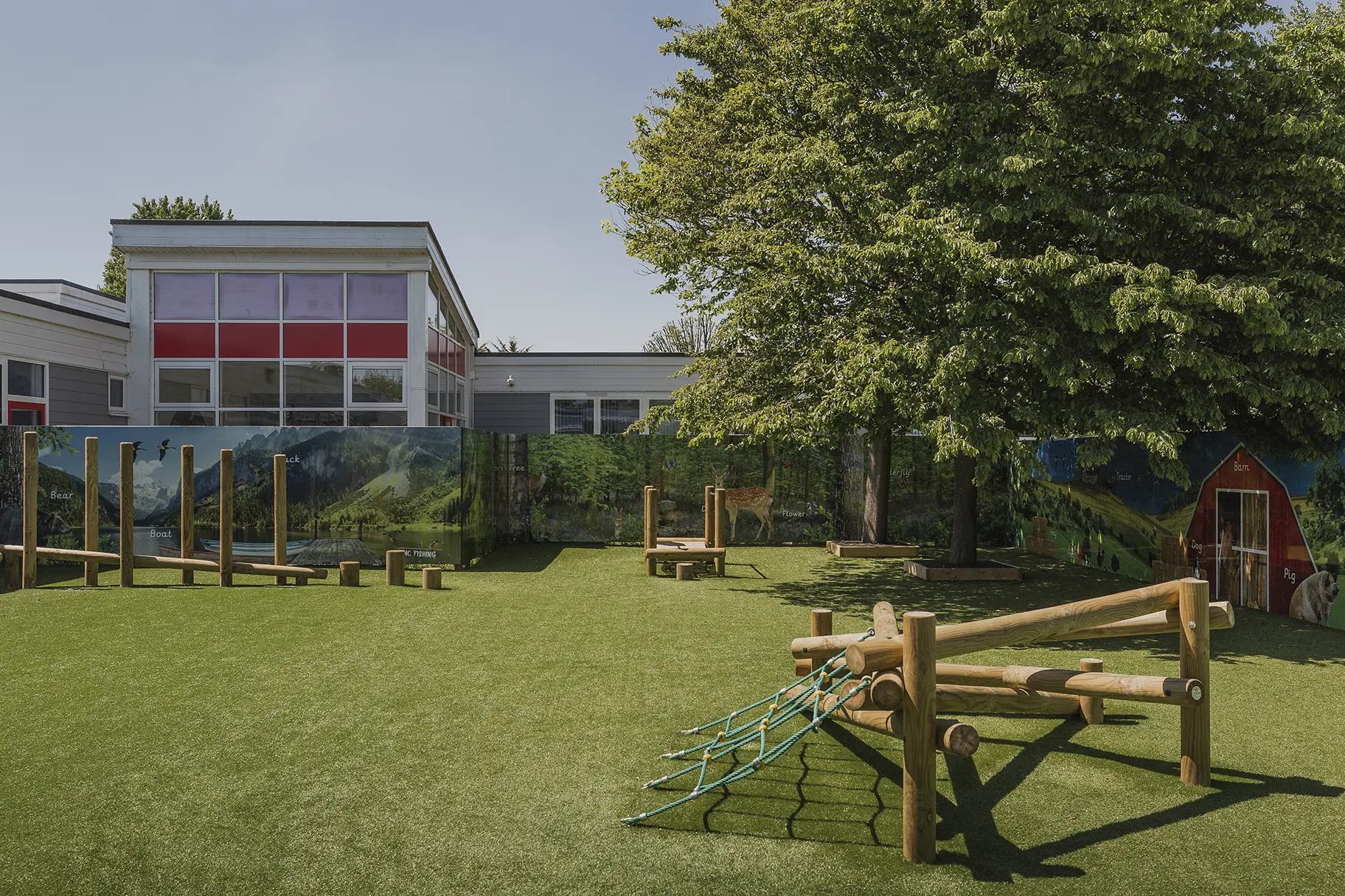 This fun, colourful design has transformed the outdoor space of the Primary School & Nursery. And the farm theme fits perfectly with the natural surroundings of the school’s outdoor area.