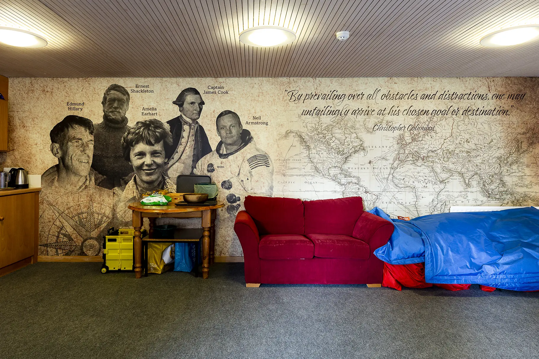 Within this Boarding House art design, we featured famous explorers from around the world. We often use photos of inspiring people within our Wall Art.