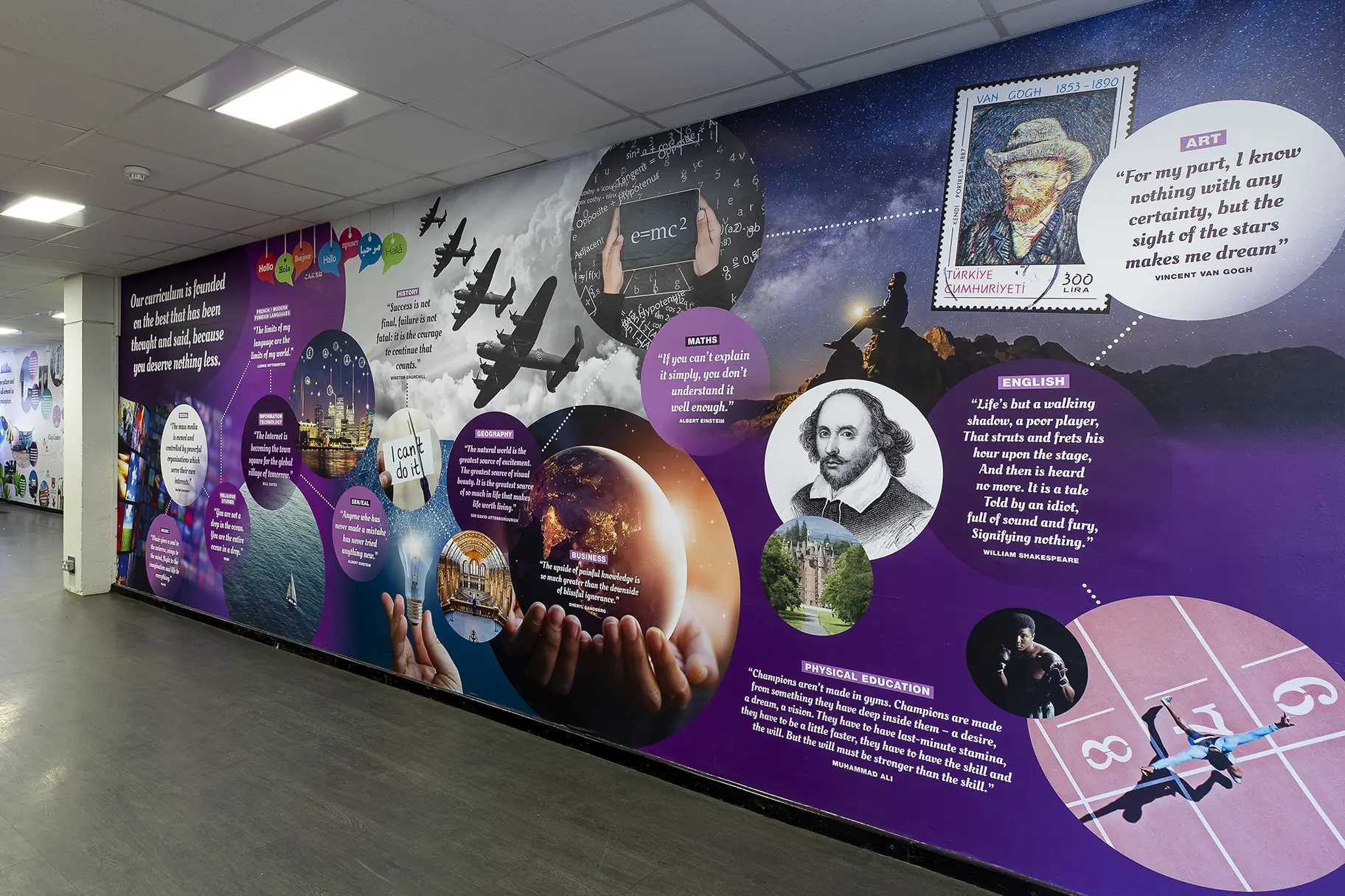 Curriculum Wall Art was the ideal choice for this all-through school in Birmingham. This is because the school offers a rich, stimulating and rewarding learning environment.